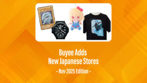 每個月,都有各種日本網路商店新加入 Buyee 合作行列。在 11 月新連結的眾多日本線上商店之中,我們精選 4 間特別受到 Buyee … Continue Reading 關於 Buyee 2025 年 11 月新合作商店推薦:日本 G-SHOCK 手錶、遊戲王卡牌、動漫居家服&絨毛玩偶通通買得到